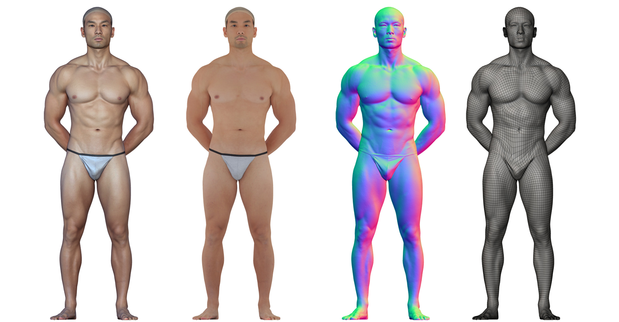 This male anatomy reference model is perfect for studying anatomical or for using as a basis for your own unique character. Our reference poses are produced using a combination of RAW scan data projection and automatic topology generation using Zremesher. Each model comes with a 5 subdivision ZTL model with between 7.5 and 8 million polygons at the highest level. We have also supplied a 750K decimated OBJ file with mlt and 8k JPG texture map. These models do not contain animation ready topology but are suitable for sculpting and basic rigging and movement.