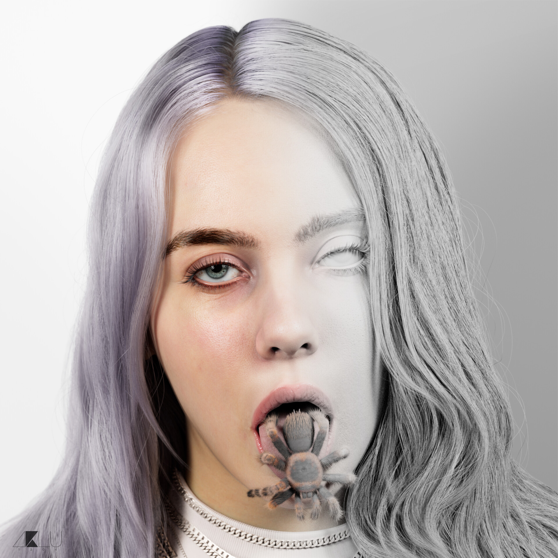 Inspired by Billie Eilish's Music Video "you should see me in a crown" BLU1304 created this amazing likeness during one of Kris Costas classes. The skin pores details were created manually in Zbrush and the albedo maps were derived from one of our retopologised head scans. The lighting was inspired by the photography of Daniel Boschung. ZBrush was used for Sculpting and Substance Painter for Texturing, Grooming was done with Xgen Core. Zwrap was used for Base Mesh wrapping and Albedo transfer.