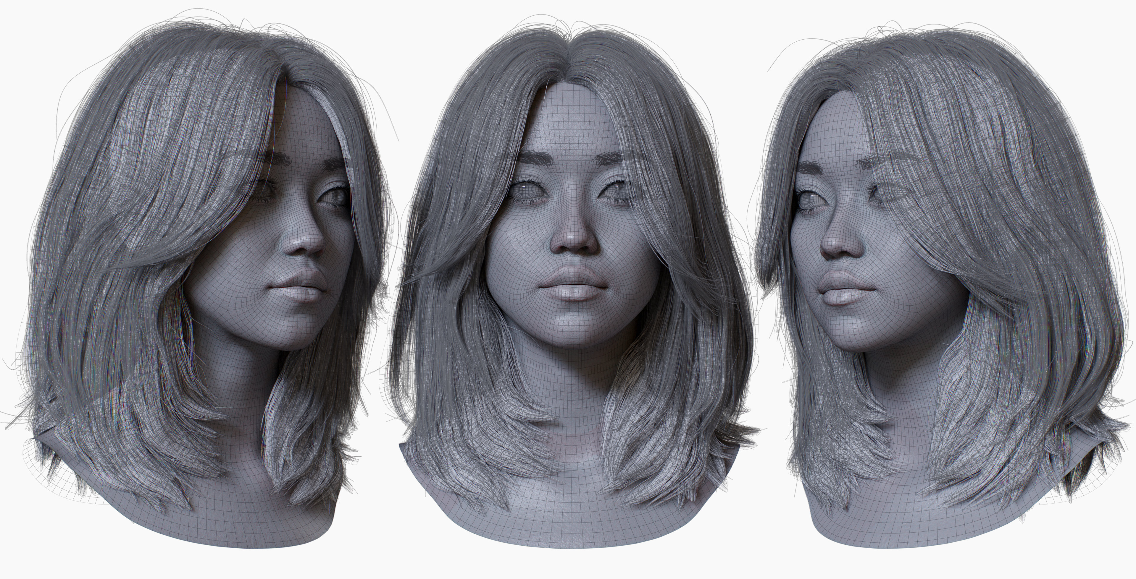 HD Female With Polygon Hair 06