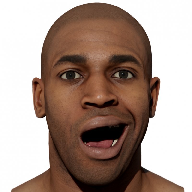 This retopologised mouth wide open expression scan features 1 retopologised head scan complete with eyes, teeth, tongue, lashes and eye wet geometry. This scan has been wrapped using optical flow and the facial expressions have been isolated and stabilised. The textures are supplied as 10,000 x 10,0..
