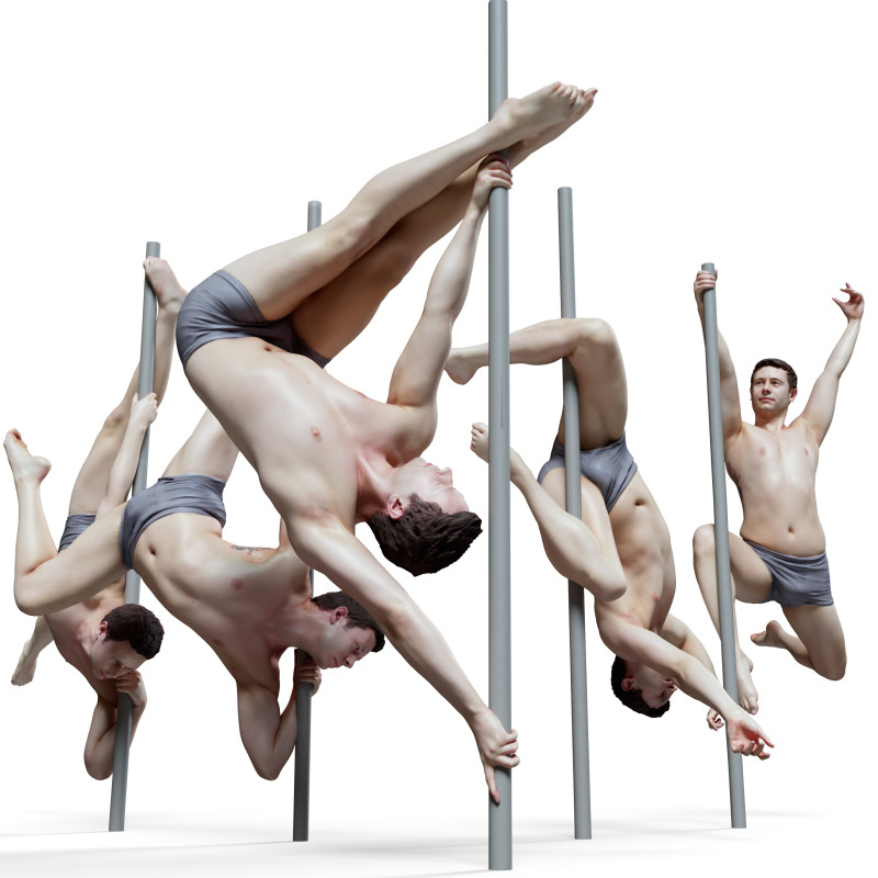 This male pole dancer reference pack features 60 unique reference poses. These models are ideal for exploring anatomy or for crafting your own distinct character. Our reference poses are created through a fusion of RAW scan data projection and automated topology generation with Zremesher. Please not..