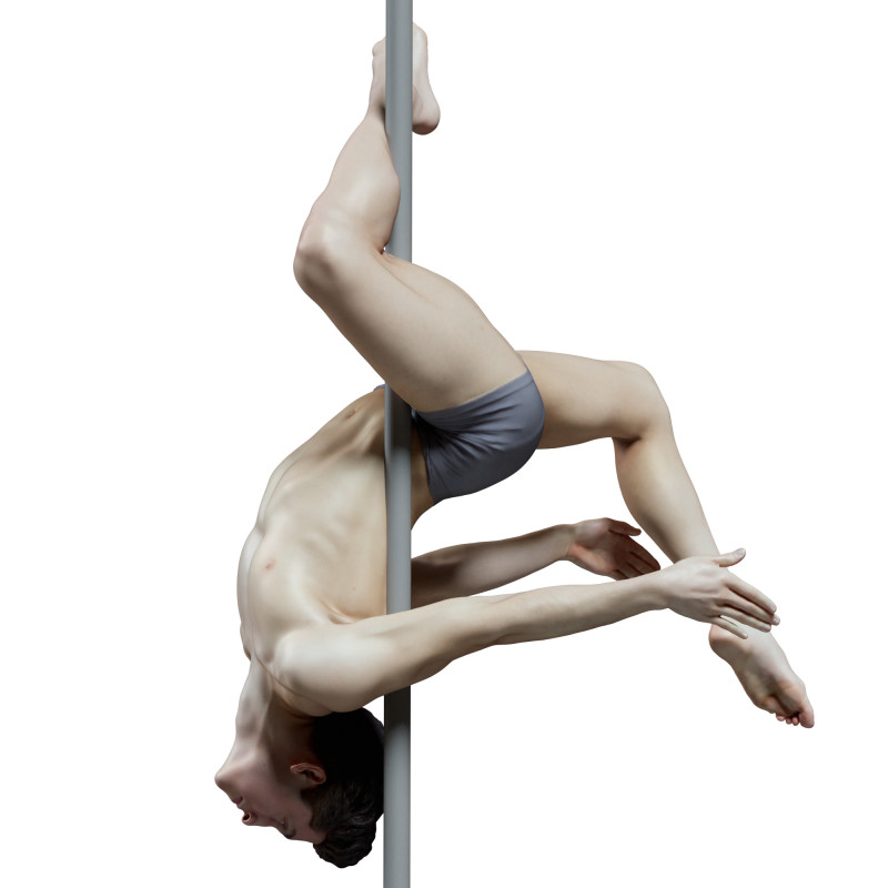 This male pole dancer pose this models is ideal exploring anatomy or for crafting your own distinct character. Our reference poses are created through a fusion of RAW scan data projection and automated topology generation with Zremesher. Please note that reference poses might include geometry and te..